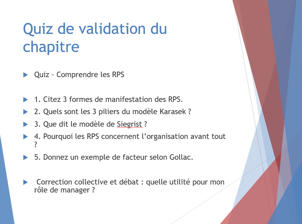 - 1 questionnaire RPS d’autoévaluation + grille d’interprétation et conseils pratiques pour renforcer la prévention dans l’équipe.