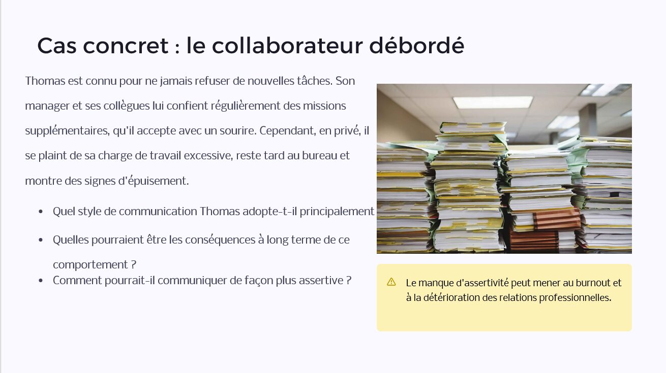 - Prévenir l’épuisement professionnel en affirmant ses besoins avec sérénité.