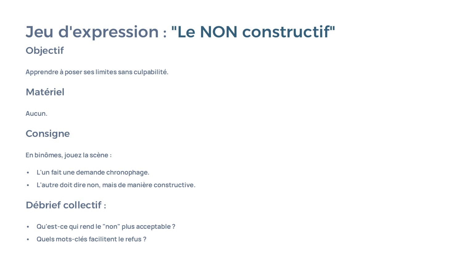 Activités, jeux, consignes, débriefings et outils prêts à l’emploi.