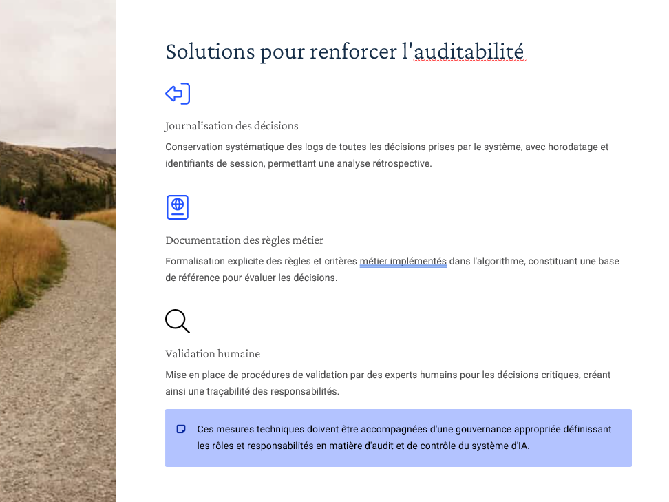 Outils pour cartographier les risques, vérifier traçabilité/explicabilité, et guider la revue de contrats pendant les sous-groupes. -