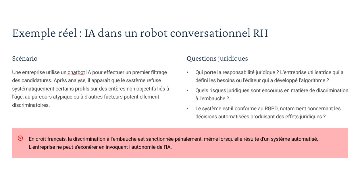 Des études de cas prêtes à l’emploi : tri de CV, refus de prêt bancaire, robot conversationnel RH, maintenance industrielle… autant de situations concrètes pour faire réfléchir vos stagiaires et nourrir les échanges.