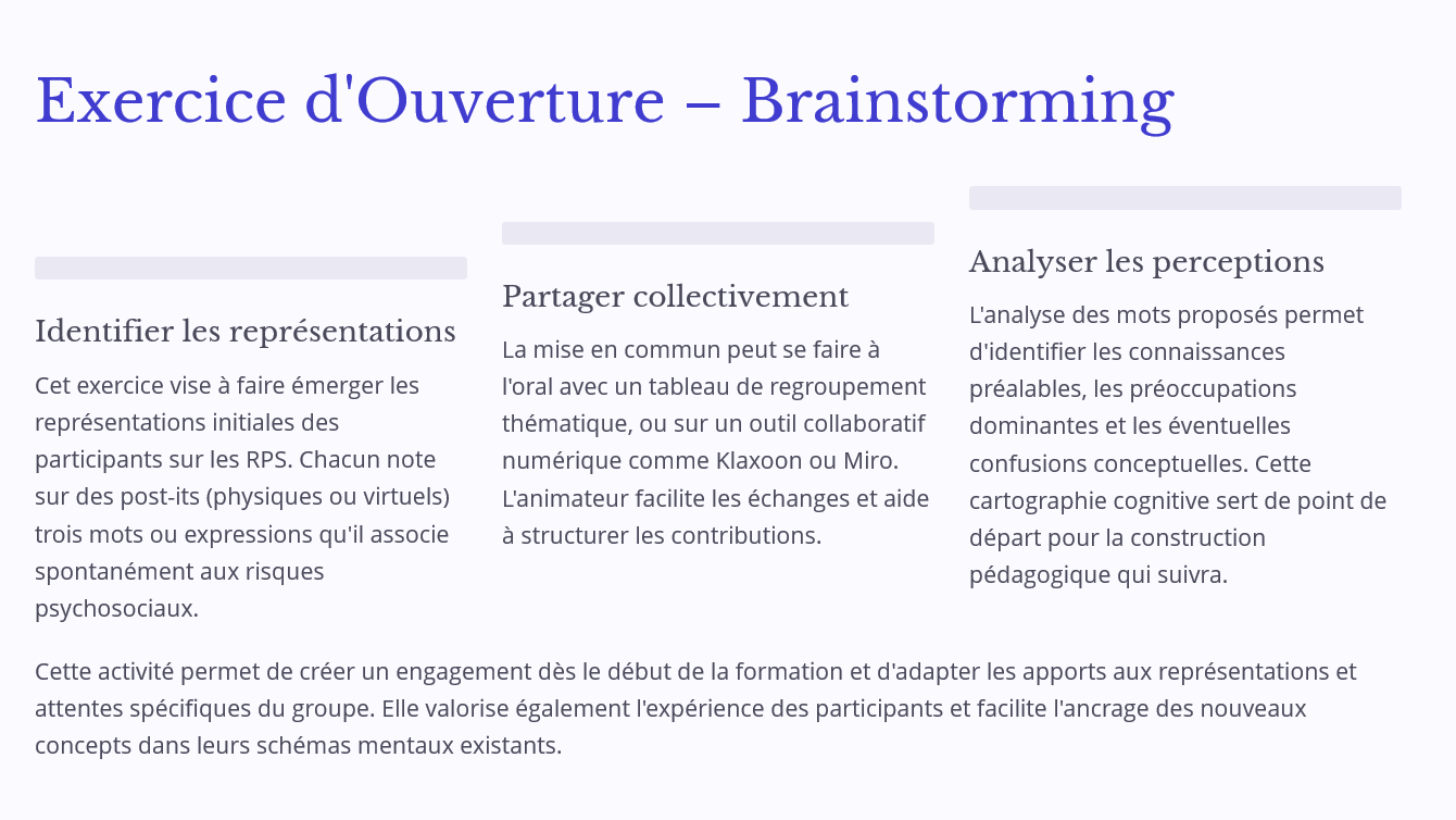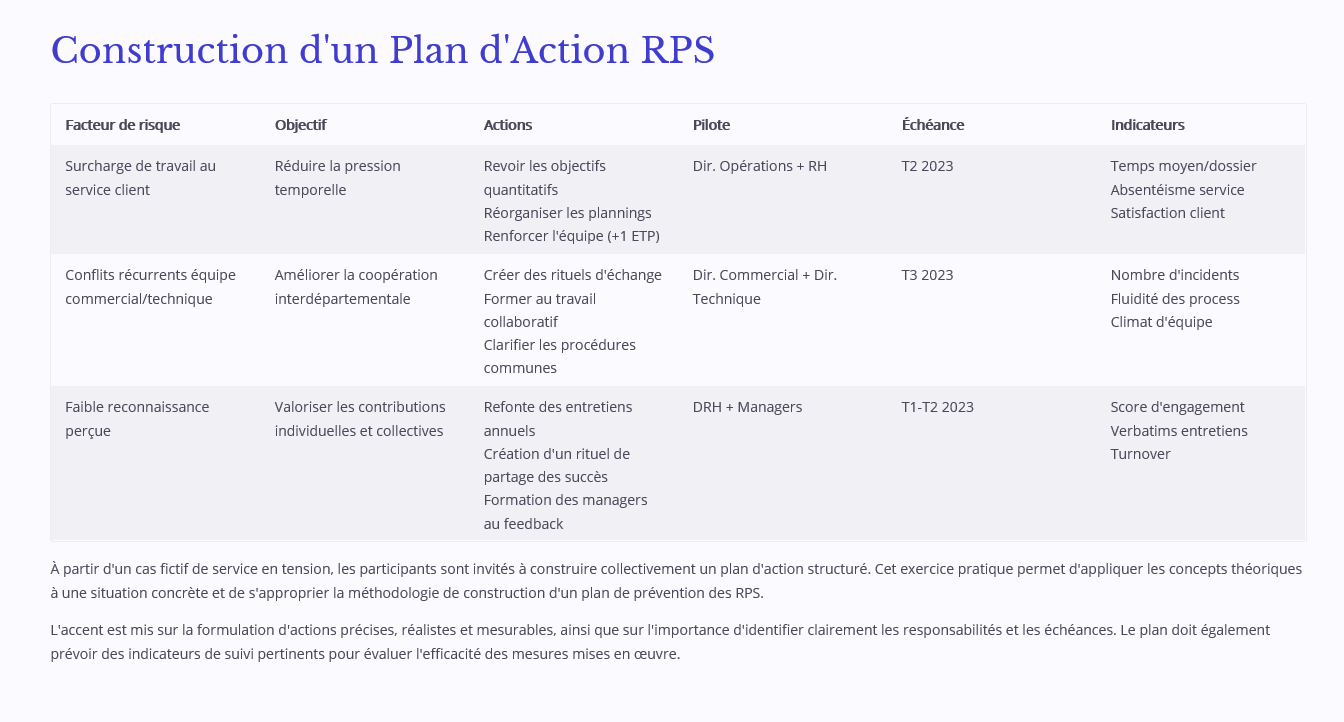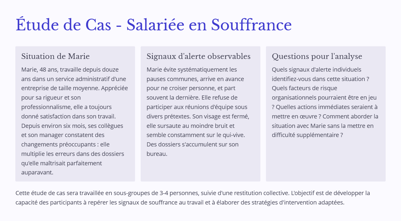 • Études de cas concrets illustrant les différents types de RPS. - Identifier les signaux d’alerte – 1h