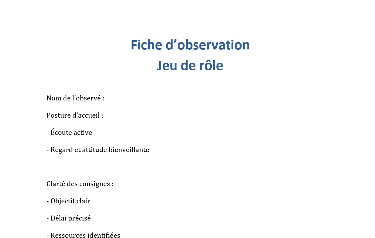Une fiche d’observation des jeux de rôles pour animer des mises en situation formatives.
