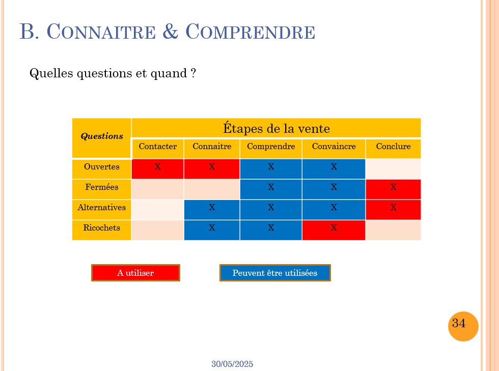 Cette formation vous aide à renforcer votre posture commerciale et vos compétences en communication pour mieux vendre. Vous apprendrez à comprendre les motivations des clients, structurer votre argumentaire, traiter les objections, et conclure avec efficacité.